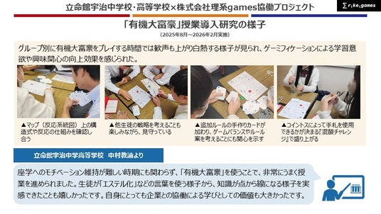 2025年8月~2026年2月 立命館宇治高等学校3年生「有機大富豪」授業導入研究の様子