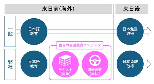 教習所系登録支援機関が実現した来日前に日本式の座学と技能を実施する国内最高水準の教育スキーム概略図