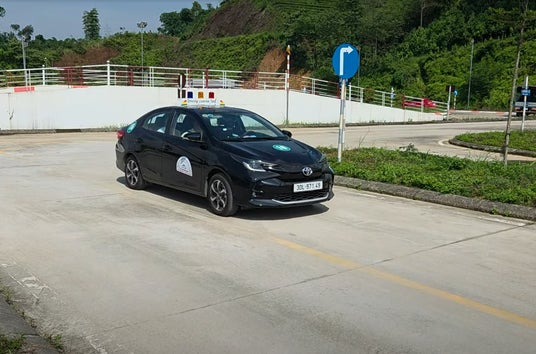 ベトナムの教習所を貸し切って左側通行を練習する様子