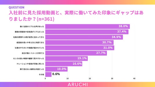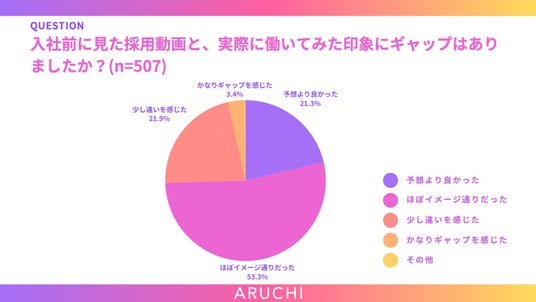 では、実際に採用動画を見て入社した人たちは、その動画の内容と現実の職場にどれほどの差を感じていたのでしょうか。