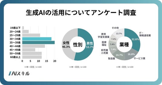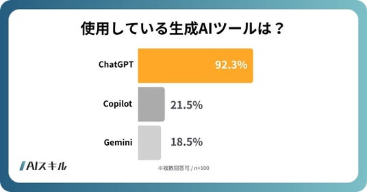 そこで、1万人以上が受講した「最新AI活用セミナー」を提供するAIスキルアカデミーでは、全国のビジネスパーソン100名を対象に「仕事でのAIツール活用」に関するアンケート調査を実施しました。