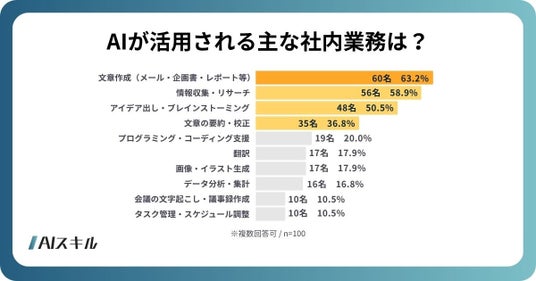 アンケートの回答から、生成AIがとくに活用されている社内業務が具体的に明らかになりました。