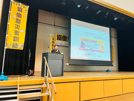 第12回協働型災害訓練in杉戸「地域のチカラ×学生のチカラ~防災×ゲーミフィケーション~」食糧支援x地域のチカラ】~フードバンクセミナー2025&非常食ランチタイム~にて、特定非営利活動法人フードバンク埼玉(埼玉県さいたま市、以下フードバンク埼玉)永田信雄理事が登壇し、食糧支援の最新情報と、令和6年能登半島地震支援について講演を行いました。