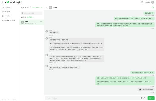 workingUは、AIを活用した育休プランの作成機能や育休取得社員と人事間のコミュニケーション支援機能を備え、2025年10月施行の改正育児・介護休業法への企業の対応をトータルでサポートして参ります。