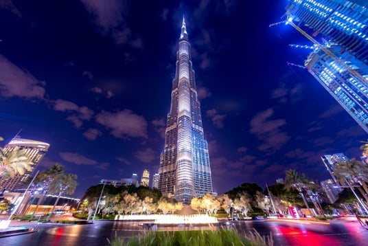 「夜空にそびえ立つブルジュハリファは、グローバルビジネスの象徴。未来を照らすその光が、世界中の投資家を惹きつける」