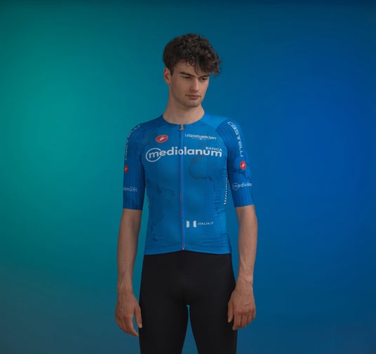 Maglia Azzurro(アッズーロ)山岳ポイントで最も多くポイントを獲得した選手に与えられる青いジャージ。厳しい山岳ステージでの登りの強さを示し、急勾配や高地でのタフな戦いが求められます。獲得には瞬発力だけでなく持久力や戦略も重要となります。