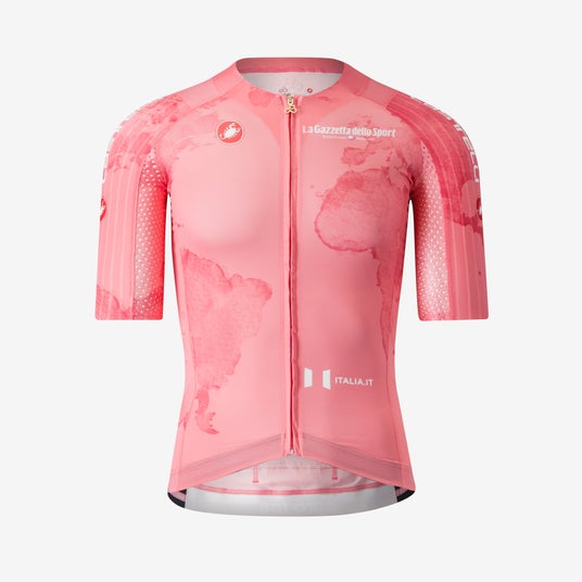 今回の公式コレクションは、マリア・ローザに使用されている「#GIRO108 Race 8S Jersey」を中心に、最新のエアロダイナミクス技術を取り入れたジャージやビブショーツなど、軽量性と通気性に優れたアイテムで構成されています。