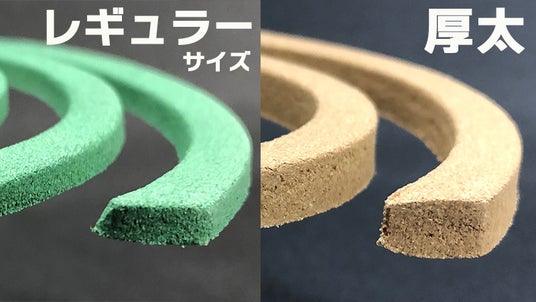 通常の蚊取り線香と厚太との厚さの比較