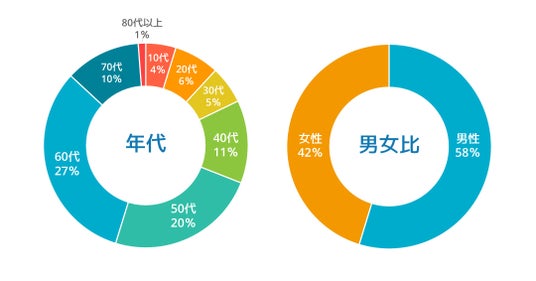 ・ 年代構成: 身体のケアや不具合の改善に関心のある50-60代が中心(42%)、幅広い年代で利用