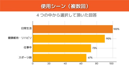 - 腰痛・膝痛の改善「整えたいのは、特別な時より“いつもの時間”。100%が“日常生活”で使用しているという結果が、その実感を裏付けています。」