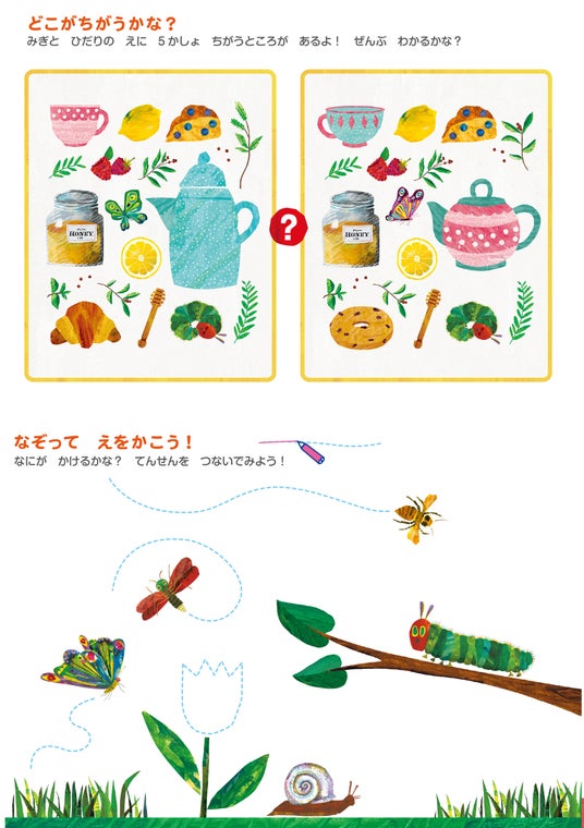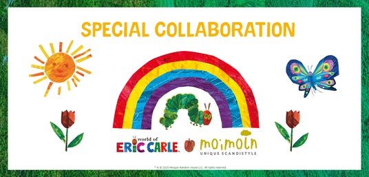 またコラボアイテムの発売を記念して、モイモルン店舗にご来店の方・オンラインショップでコラボ商品をご購入の方に先着で、間違い探しや塗り絵などが楽しめる「ERIC CARLE たのしいあそびブック!」を配布。お子様が夢中になる内容となっておりますので、この機会にぜひモイモルン店舗またはオンラインストアにご来店ください。