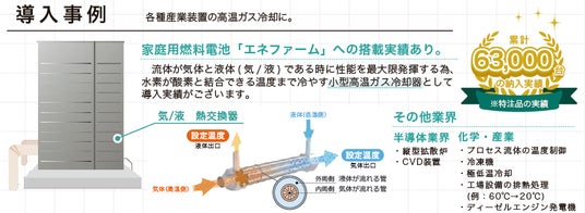 本製品は各種産業装置の排熱回収を行う機器で、家庭用燃料電池の小型高温ガス冷却器として搭載され、累計63,000台の導入実績がございます。