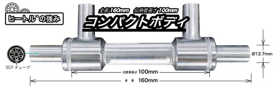 全長160mm、伝熱管長さ100mm シェルアンドチューブ熱交換器の中では珍しい(※3)小型設計。