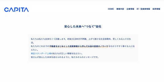 株式会社CAPITA(所在地:東京都豊島区、代表取締役社長:菊池正俊)は、当社が不動産をはじめとした投資事業で学んだ知見・ノウハウを発信するWebメディア「キャピタ投資ナビ」を運営しております。