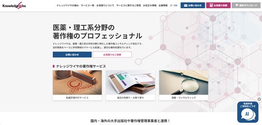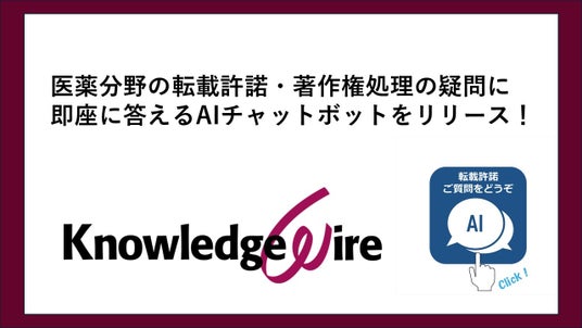 株式会社ナレッジワイヤ(本社:東京都新宿区、代表取締役社長:伊藤 勝、以下 ナレッジワイヤ)は、医薬分野における著作権および転載許諾処理に関する皆様の疑問にお答えするため、AIチャットボットを当社ウェブサイト(https://www.kwire.co.jp/)にて公開いたしました。