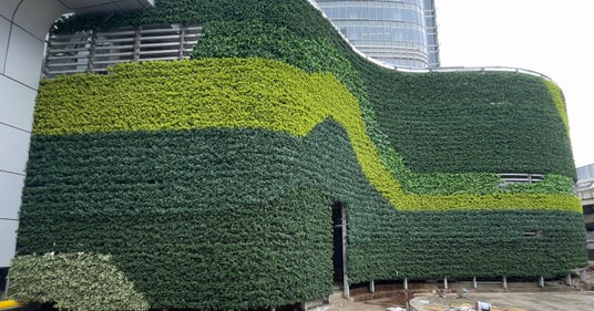 消防法の適用対象外であっても、安心して導入できる造花・フェイクグリーンとして、公共空間や商業施設など幅広いシーンでの壁面緑化実施の可能性を広げました。