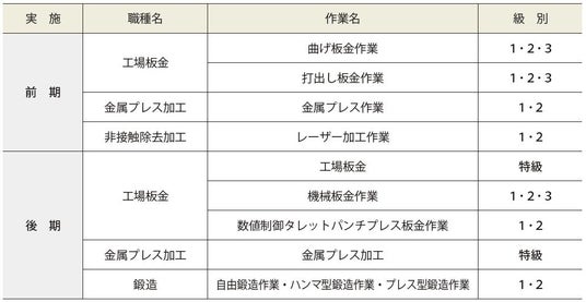 前期の対象職種は「工場板金」「金属プレス加工」「非接触除去加工(レーザー加工作業)」