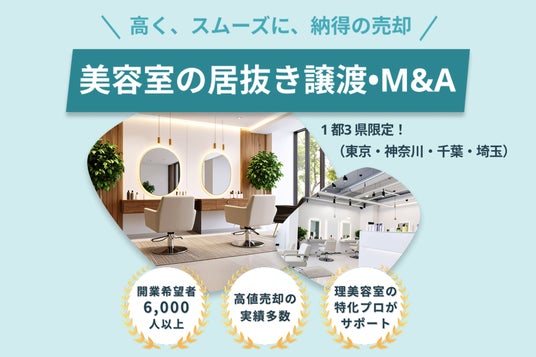 事業を閉じるのではなく、つなぐという選択。経営判断を支える、美容室専門の居抜き譲渡・M&A支援サービスが一都三県エリアで新たな価値を創出します。