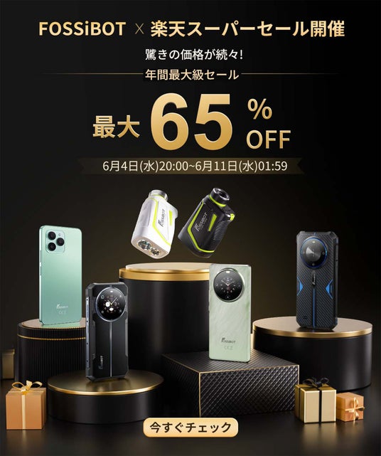 ゴルフレーザー距離計およびスマートフォンの注目ブランド FOSSiBOT(フォッシボット) を展開する当社は、楽天スーパーSALE において、スマートフォンやアウトドア製品を 最大65%OFF で提供する特別セールを 6月4日(火)20:00より開催 いたします。