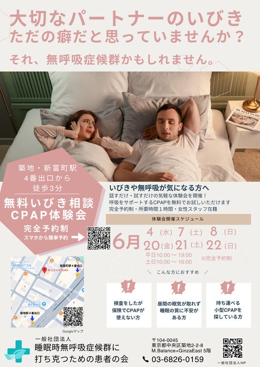 「CPAPを試せる場所」が東京・築地に誕生──保険適用外でも選べる、睡眠時無呼吸対策の無料体験イベント開催!