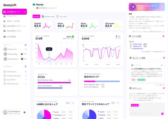 QueryLift は、この構造転換に対応する GEO(生成エンジン最適化:Generative Engine Optimization)可視化ツールを提供し、わずか数クリックで生成AI経由の問い合わせ・顧客獲得機会を最大化できる環境を整備いたします。