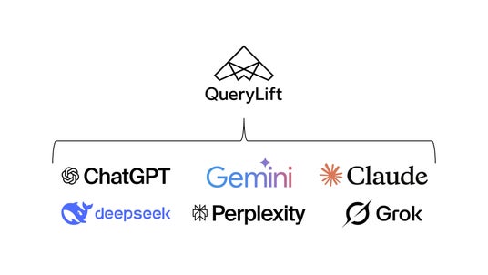 - QueryLiftを自社サイトに数クリックでつなぐだけで、ChatGPTやGoogle Gemini(AIモード含む)、Claude、DeepSeekなど主要な生成AIすべてに対して、情報の“伝わり方”を自動で可視化・監視できます。