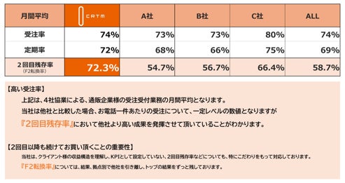 実際に当社が対応した通販受注において、他社と比較してフリークエンシーが高いことが数値で確認されています。