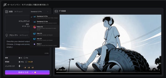 画像・テキストからの動画生成を革新。最先端の6つのAI動画生成モデルを統合し、多彩な映像表現を自由自在に実現