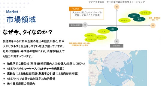そして、タイをハブにすることで、中国・インド・ASEAN全域30億人へ広がる巨大マーケットへの展開が可能です。