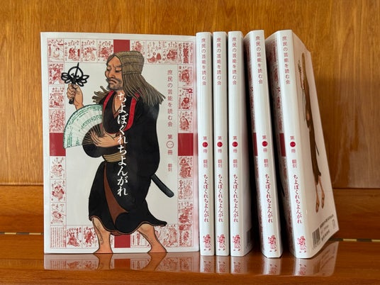2017年東京都北区王子の古書カフェくしゃまんべにて発会した庶民の芸能を読む会。ちょぼくれちょんがれ、やんれ節、あほだら経、万歳、説経祭文等、現在あまり目に触れる機会のない江戸後期以降の芸能資料に触れながら、当時の庶民が接していたくずし字に親しむ会。2020年以降はオンラインで開催。(運営はブックスKMBの竹内正則。案内は中西レモン。)