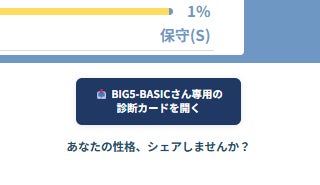 性格診断サービス「BIG5-BASIC(ビッグファイブ・ベーシック)」は、累計利用者150万人を突破したことをお知らせいたします。今回の節目に合わせ、新たな機能として診断結果を画像化して保存・共有できる「診断カード」機能を新たに実装しました。