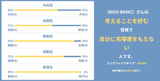 ビッグファイブ理論をもとにしたWeb性格診断サービス「BIG5-BASIC」、新機能追加で自己理解をさらに支援