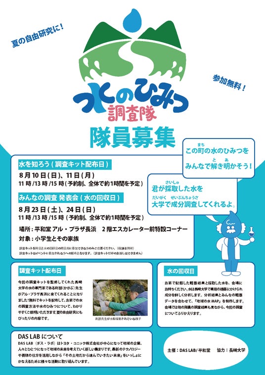 地域と未来をつなぐ夏の自由研究企画「水のひみつ調査隊」が、アル・プラザ長浜で始まります。