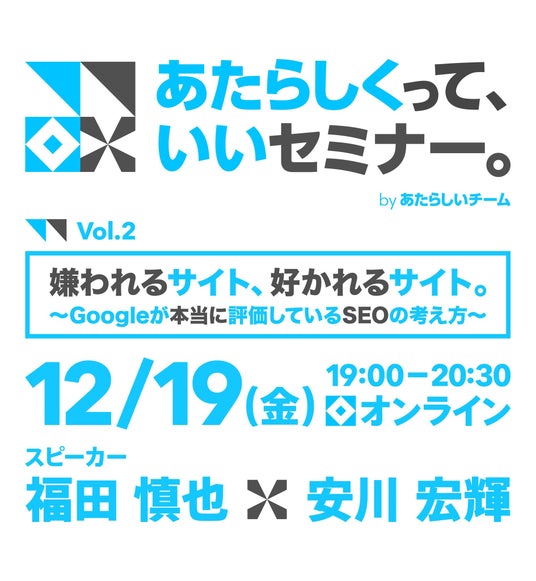 株式会社あたらしいチームは2025年11月19日(水)に、あたらしくって、いいセミナーvol.1。2025年12月19日(金)にvol.2を開催いたしました。