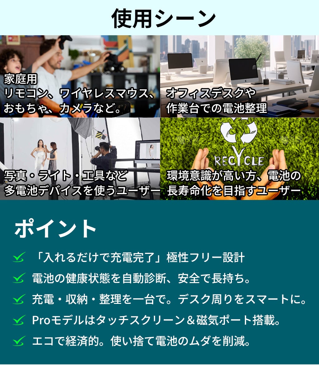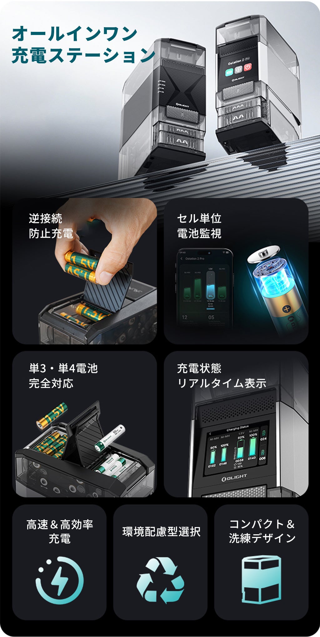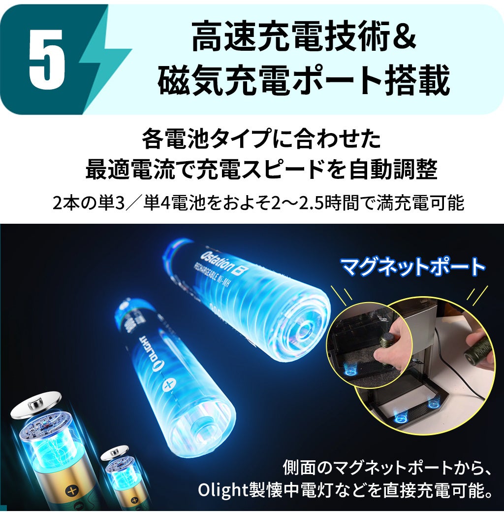 今回の提携の核心は、より環境に優しく、持続可能なエネルギー使用方法を日本の消費者に推進することにあります。「Ostation 2 Pro」は、(単三/単四)ニッケル水素電池およびOlight AA 1.5Vリチウムイオン充電池専用に設計されたインテリジェント充電デバイスです。使い捨て製品の廃棄物削減に対する世界的な関心が高まる中、「Ostation 2 Pro」は充電池の循環利用を促進することで、電池廃棄物の削減、資源の節約、環境保護という喫緊の課題に直接応えるものです。