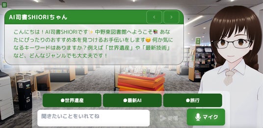 SHIORIは、自然対話型のAIと3Dアバターを組み合わせた“話しかけられる司書”。