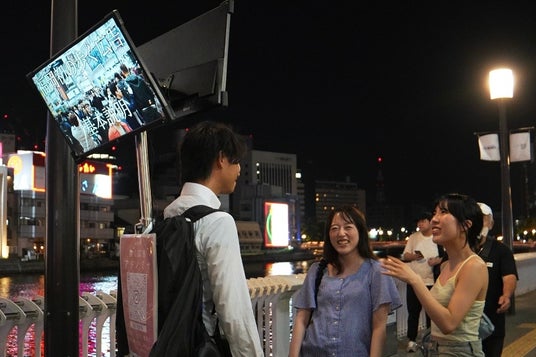 福岡県内を中心に、街中を前後2面の大型モニターを装着した担ぎ手が歩きながら広告映像を放映するサービス「AD Nomiya(アドノミヤ)」は、8月19日、ブランドコンセプトを「歩く広告」から、その場で試せて話せる「コミュニケーションメディア」に進化させたことを発表いたします。