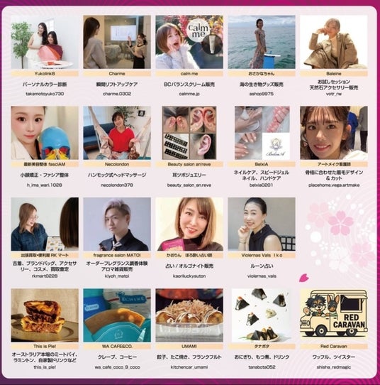 キッチンカー・美容・アクセサリーなど総勢20のお店が大集合!桜をテーマとした映えるフォトブースも設置