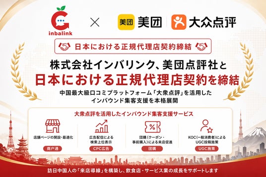 株式会社インバリンク(本社:東京都港区、代表取締役:燕 楠、以下「当社」)は、中国最大級の口コミ・生活情報プラットフォーム「大衆点評」を運営する美団点評社(Meituan Dianping)と、日本における正規代理店契約を締結したことをお知らせいたします。