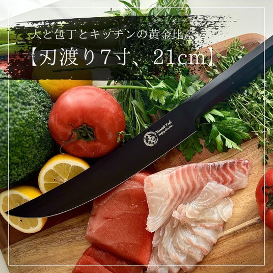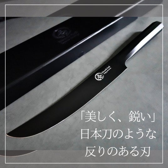日本刀からインスピレーションを受けた刀身、マットな質感は高級感のある仕上がりに。切れる、映える、新しい、三拍子揃ったマルチ包丁。