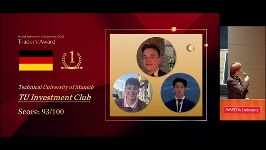 2025年12月14日~2026年3月13日の期間で行われた、国際投資大会「World Investment Competition 2025(WIC2025)」の閉会式が早稲田大学にて実施