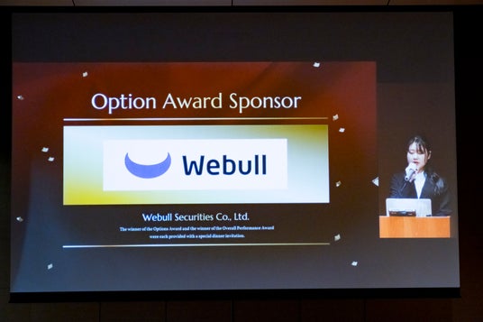 ウィブル証券株式会社本大会をスポンサードいただいたウィブル証券からは、オプションアワードの設置と総合優勝、オプション賞の賞品としてディナー招待券をご提供いただきました。閉会式では山本氏が表彰コメントとして「株式に加えてオプション取引も採用されたことで本大会はより実践的な学びの場となり、参加者にとってオプションの可能性とリスク管理の重要性を深く理解する貴重な機会になった」と述べられました。