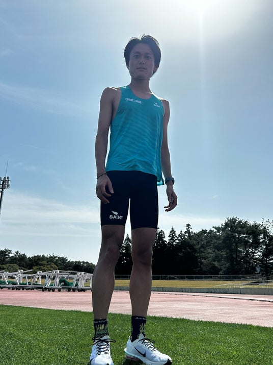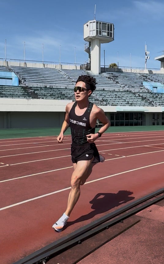 AQUA GREENを着用する神薗竜馬選手(ひらまつ病院陸上部 新ユニフォーム)
