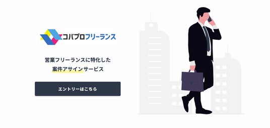 コバプロフリーランスでは、営業フリーランスの方が個人で独立後「自己ブランディングの課題・案件獲得の仕組み化の欠如」といった案件獲得における課題を解消し、最短即日で業務委託案件へアサイン致します。新規開拓に関するインサイドセールス案件だけでなく、フィードセールス案件やプレイング、ディレクション領域の業務など幅広くご紹介可能で、スキルアップと同時に高収益なフィーを獲得することが可能です。