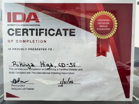 沖縄県南城市のカーディテイリング専門店「カーディテイリングオキナワ(CDO)」の代表・比嘉力也が、世界最大のカーディテイリング業界団体であるIDA(International Detailing Association/本部:米国ミネソタ州)の認定資格「Certified Detailer - Skills Validated(CD-SV)」を2026年2月に取得しました。