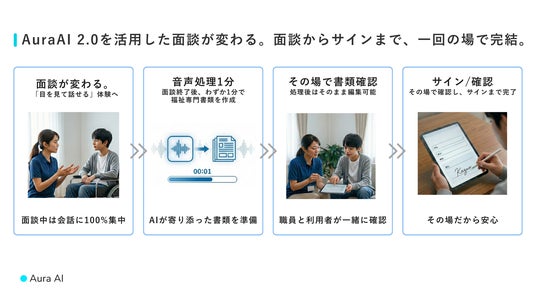 Aura AI 2.0は障害福祉・介護分野を皮切りに、医療、教育、法律相談など、「対面での会話」と「記録・書類作成」が同時に求められるあらゆる領域への展開を予定しています。