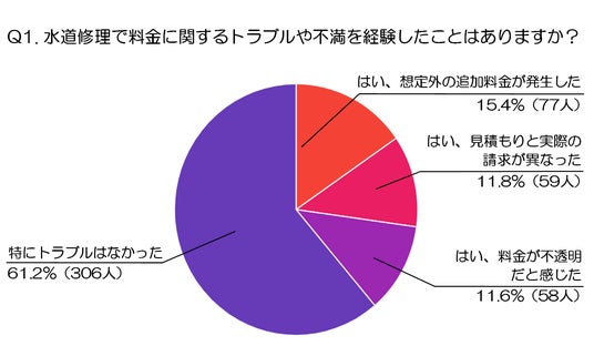 Q1. 水道修理で料金に関するトラブルや不満を経験したことはありますか?