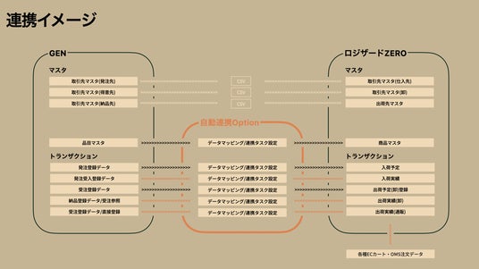 「GEN」と「ロジザードZERO」間で、以下のデータを自動連携します。