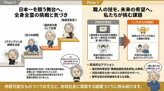 これは、デジタル化が加速する社会において、ともすれば軽視されがちな「技能」の価値を再定義し、その魅力を次世代へ継承していくという、当社の固い“決意”です。ネットオーダー事業を展開する経営者自らが、技能の頂点を目指す姿を示すことで、旧来の職人像を刷新し、これまでの常識にとらわれない、業界の新しいスタンダードを創り出していきます。