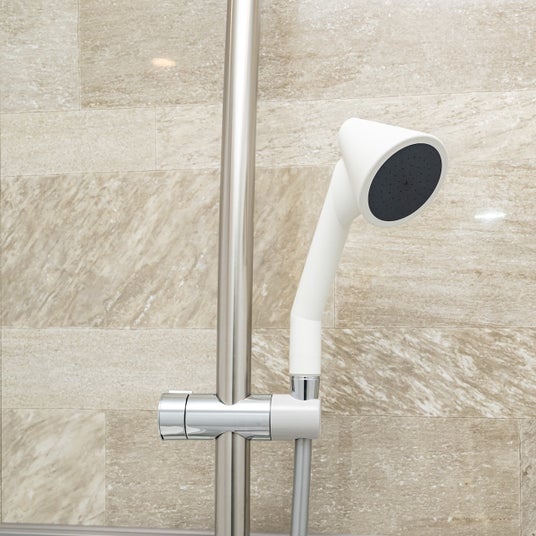 トルネードバブルはスギ花粉や黄砂と同じくらいの大きさであるマイクロバブルを、スズモト独自の旋回流技術と水出口の穴の大きさや配置と組み合わせにより、マイクロバブルにありがちな低水圧ではなく、心地よい水圧感を実現した微細泡です。このトルネードバブルが毛穴汚れを浮かせ洗浄。加えて、微細な泡の浸透により、湯上がり後の温かさが持続します。
